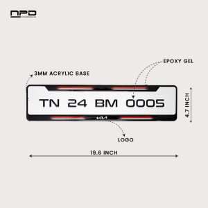 Upgrade your car’s style with this Premium Gel Number Plate, featuring a 3D epoxy finish for a modern, high-gloss look. Built on a 3mm thickness acrylic base, this plate is both durable and stylish. It includes a custom brand name and logo, offering a personalized touch. It fits most vehicles seamlessly with a standard size of 19.6 x 4.7 inches.