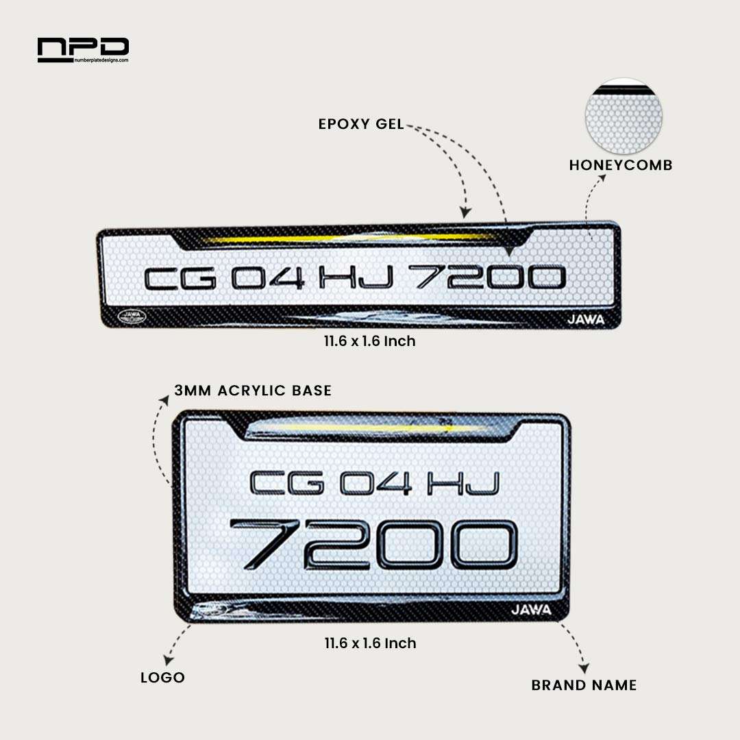 Upgrade your bike or scooter’s style with our Premium Epoxy Gel Number Plate, designed with a unique honeycomb texture and finished with a sleek 3 mm acrylic base. Measuring 11.6 x 1.6 inches, this number plate is a perfect fit for two-wheelers. The epoxy gel coating adds a high-gloss 3D look while ensuring durability and resistance to fading. You can personalize it with a custom logo and brand name, making your vehicle stand out.