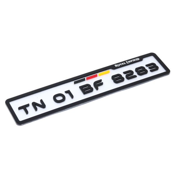 Our professional designer makes use of a high-quality reflective plate made with specially selected acrylic material to fulfil all your requirements and to attract the attention of all those who pass by. You will be surprised to know that the use of the latest engraving technique adds to the novelty of this design. Besides, a beautiful 2 mm black frame adds further elegance to this Royal Enfield License Plate. You can add your name, profession or brand and whatnot, with the registration number. Besides, a reflective black sticker comes over the text giving it a wonderful appearance.